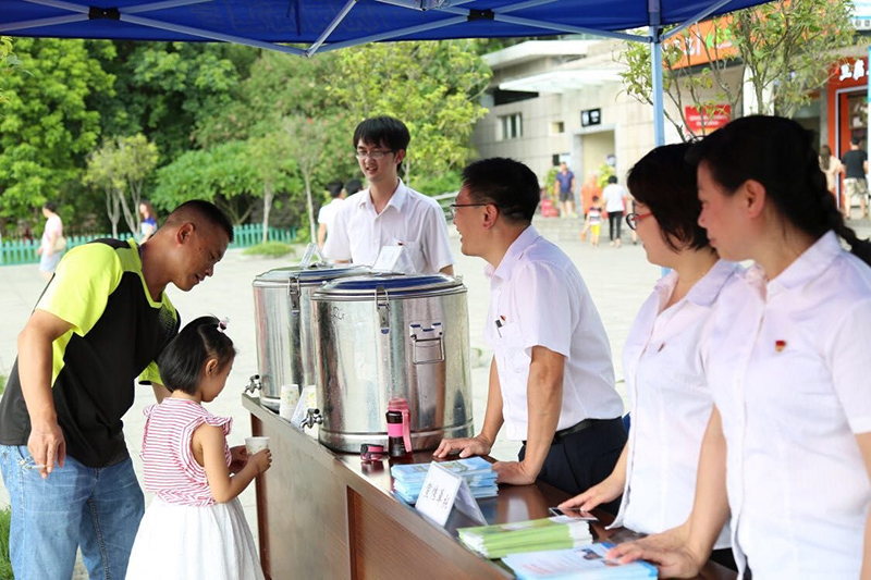 2018年7月19日,?;⒎止局驹阜?wù)主題黨日活動(dòng),為來往司乘人員提供涼茶、茶葉茶等解暑飲料。