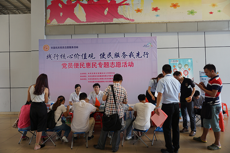 2015年6月17日,?;⒎止鹃_展“黨員聯(lián)群眾”服務(wù)點(diǎn)“,黨員到莞樟路站進(jìn)行服務(wù)。