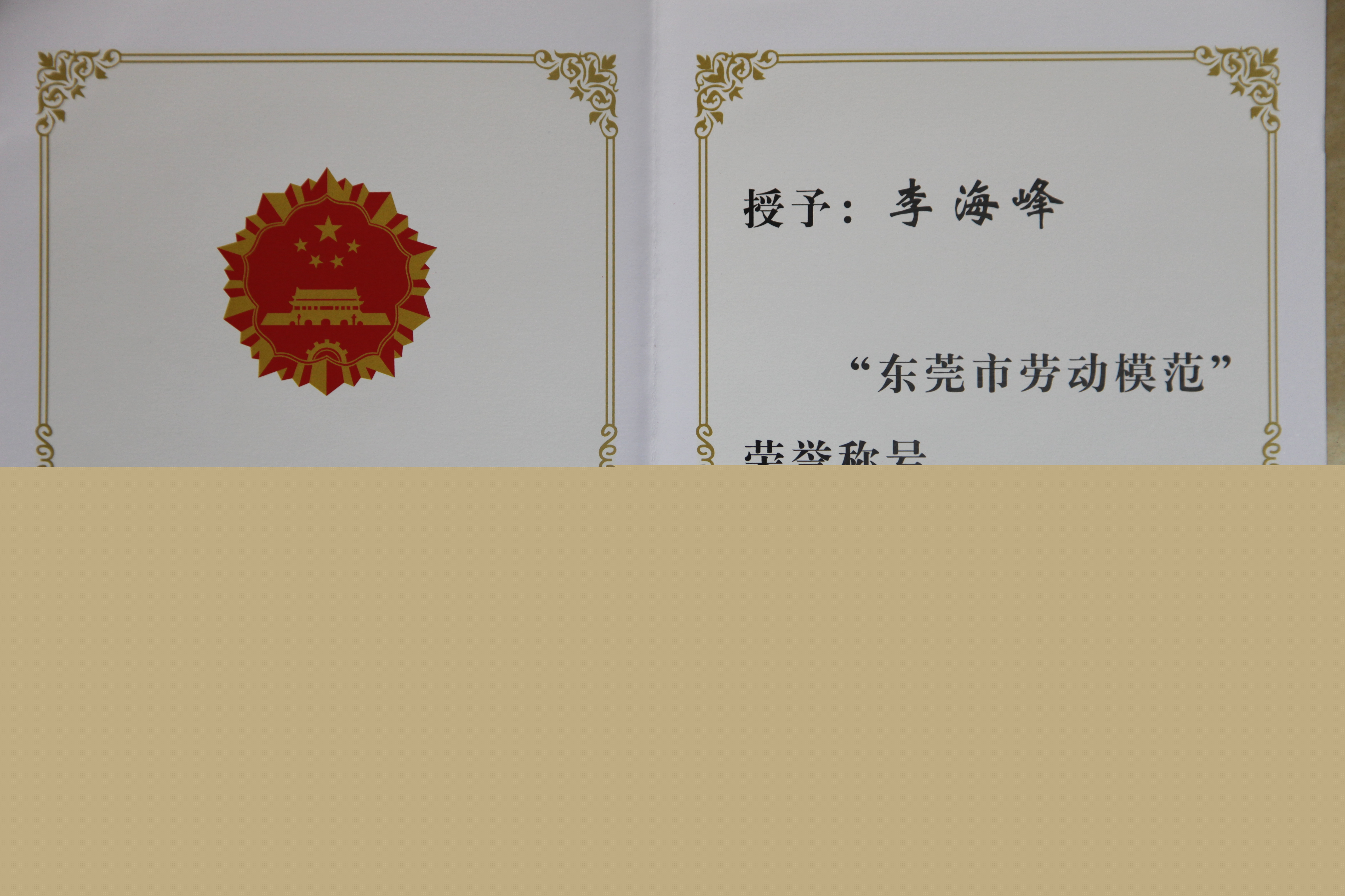 2013年4月,中共東莞市委、市政府向市軌道公司李海峰授予“東莞市勞動(dòng)模范”榮譽(yù)稱號。
