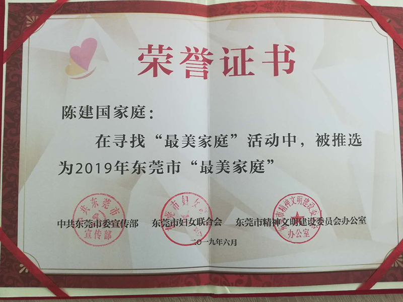 2019年6月-東莞控股公司員工陳建國獲2019年東莞市最美家庭