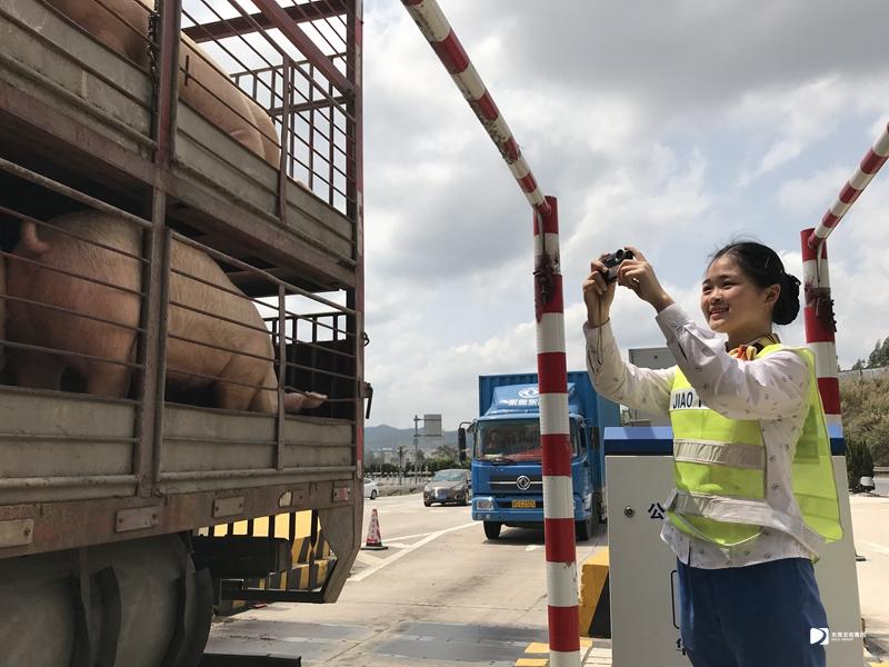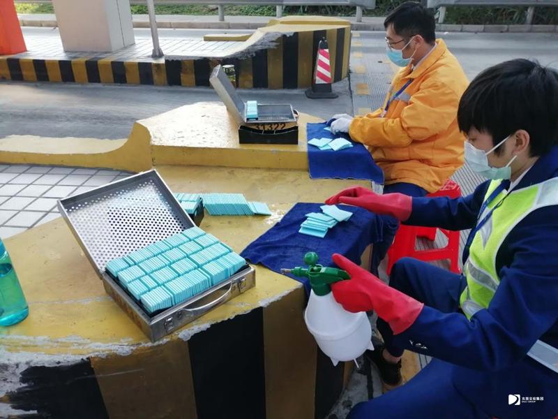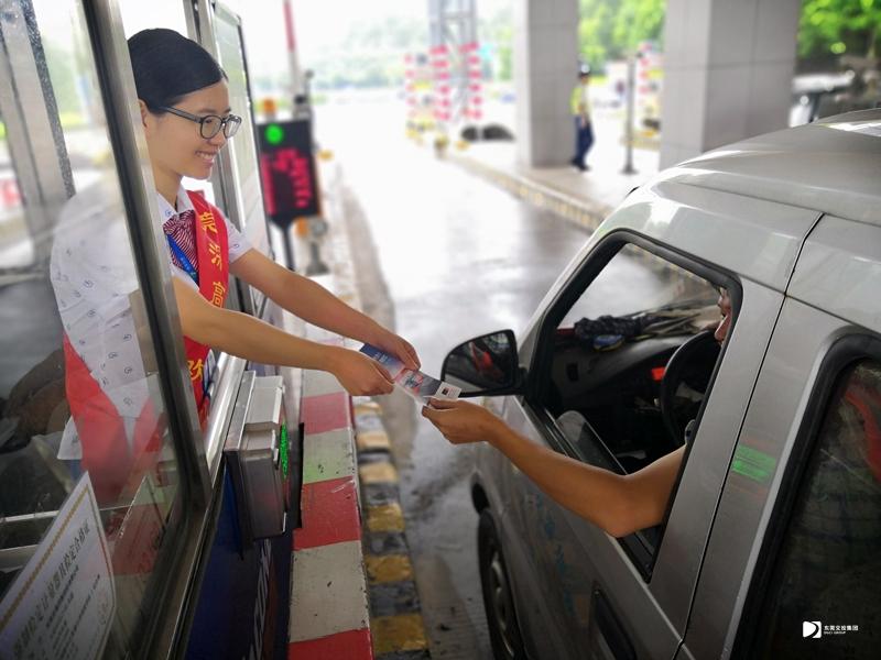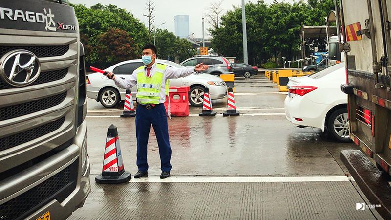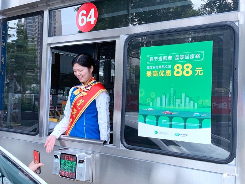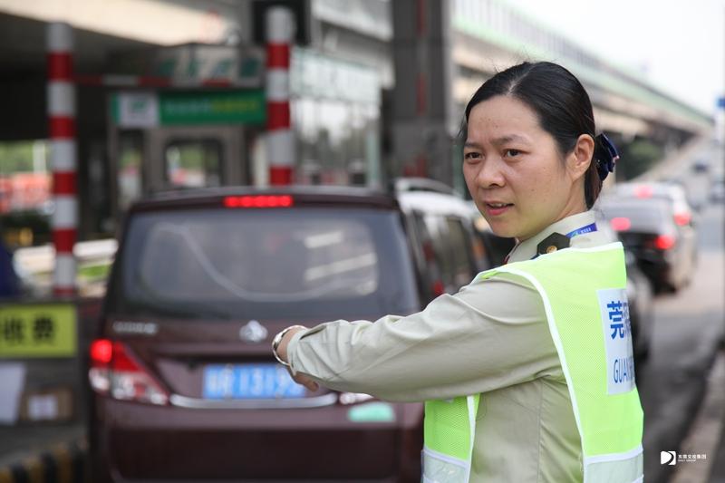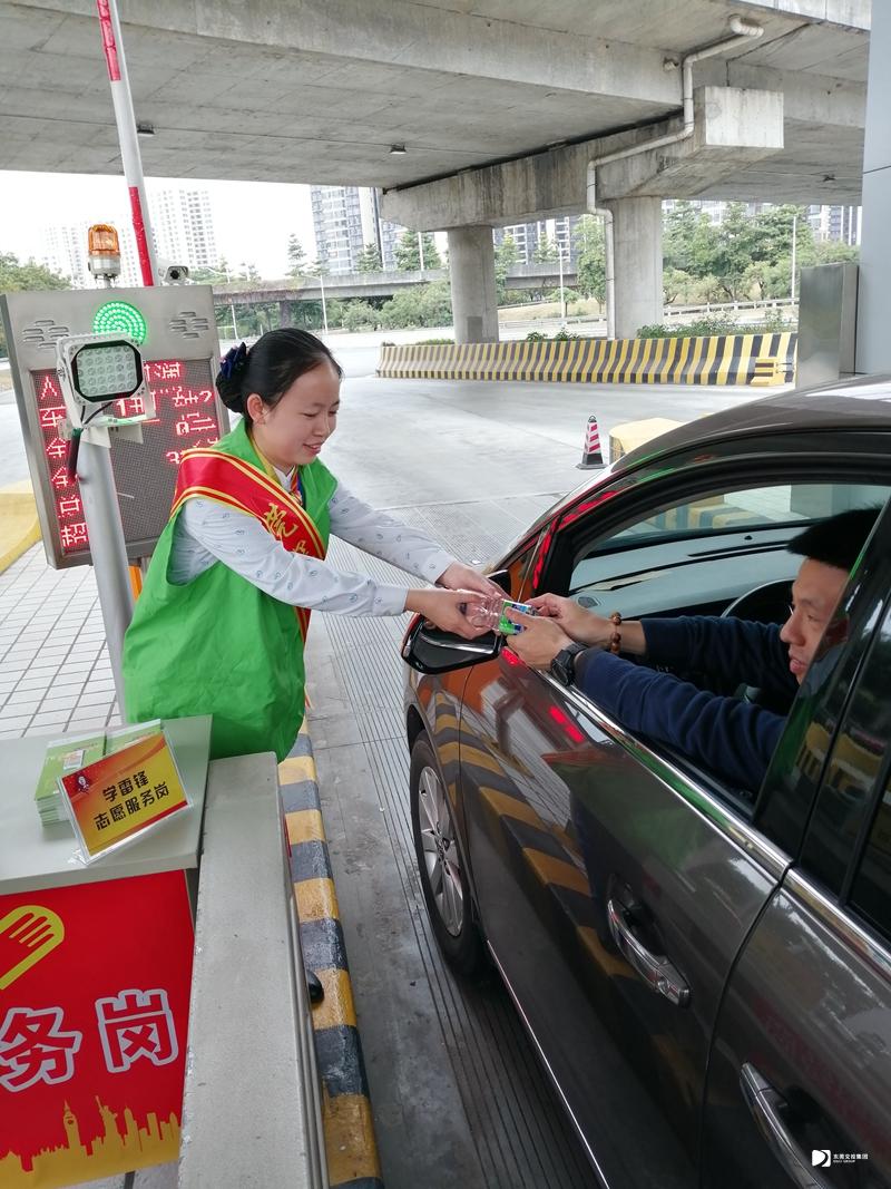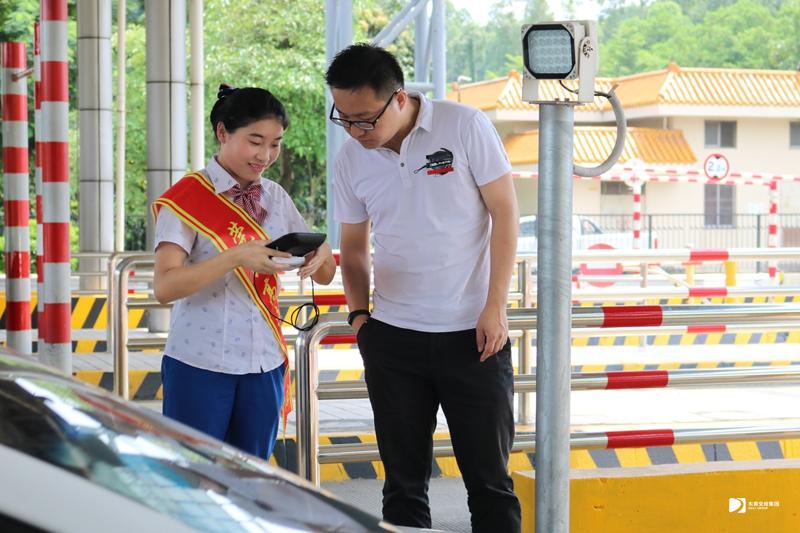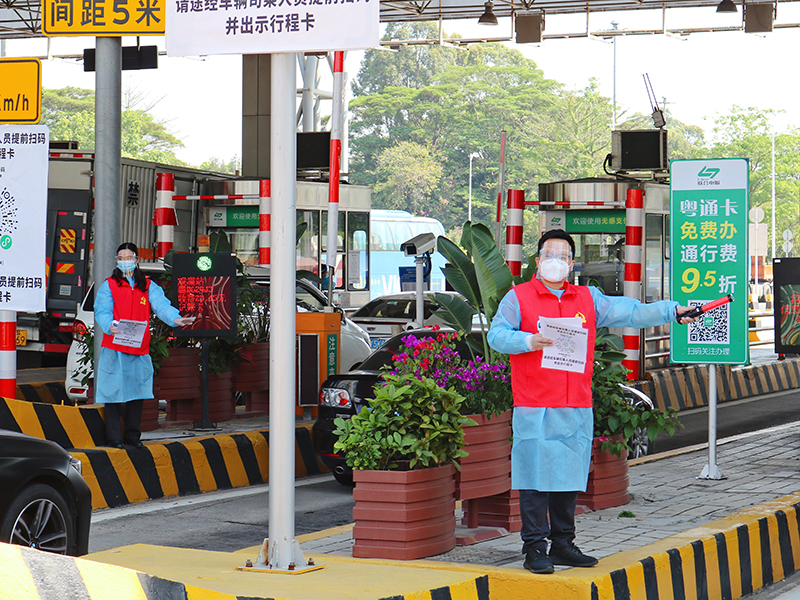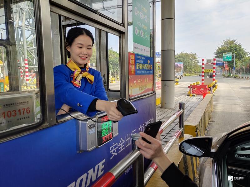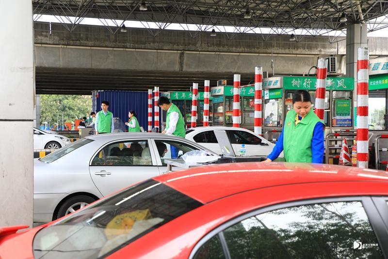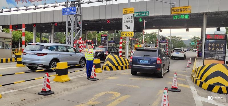 東莞控股公司志愿者在莞深高速所轄收費站引導(dǎo)司乘人員有序掃碼通行