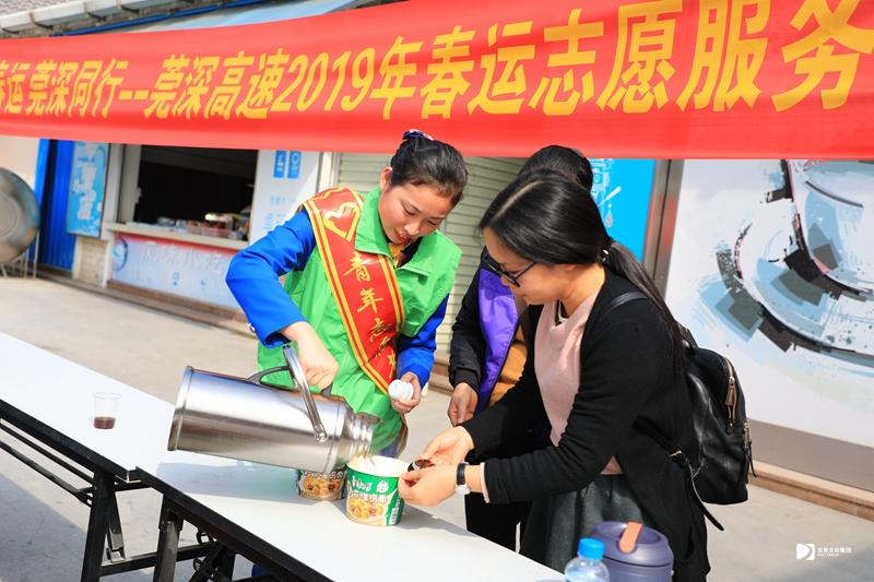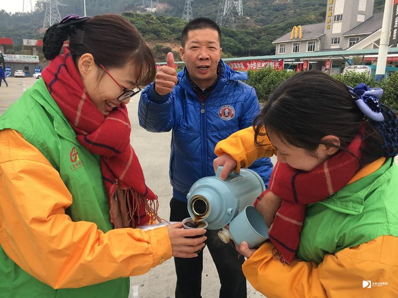 春運期間,為途徑服務(wù)區(qū)的旅客送上熱開水