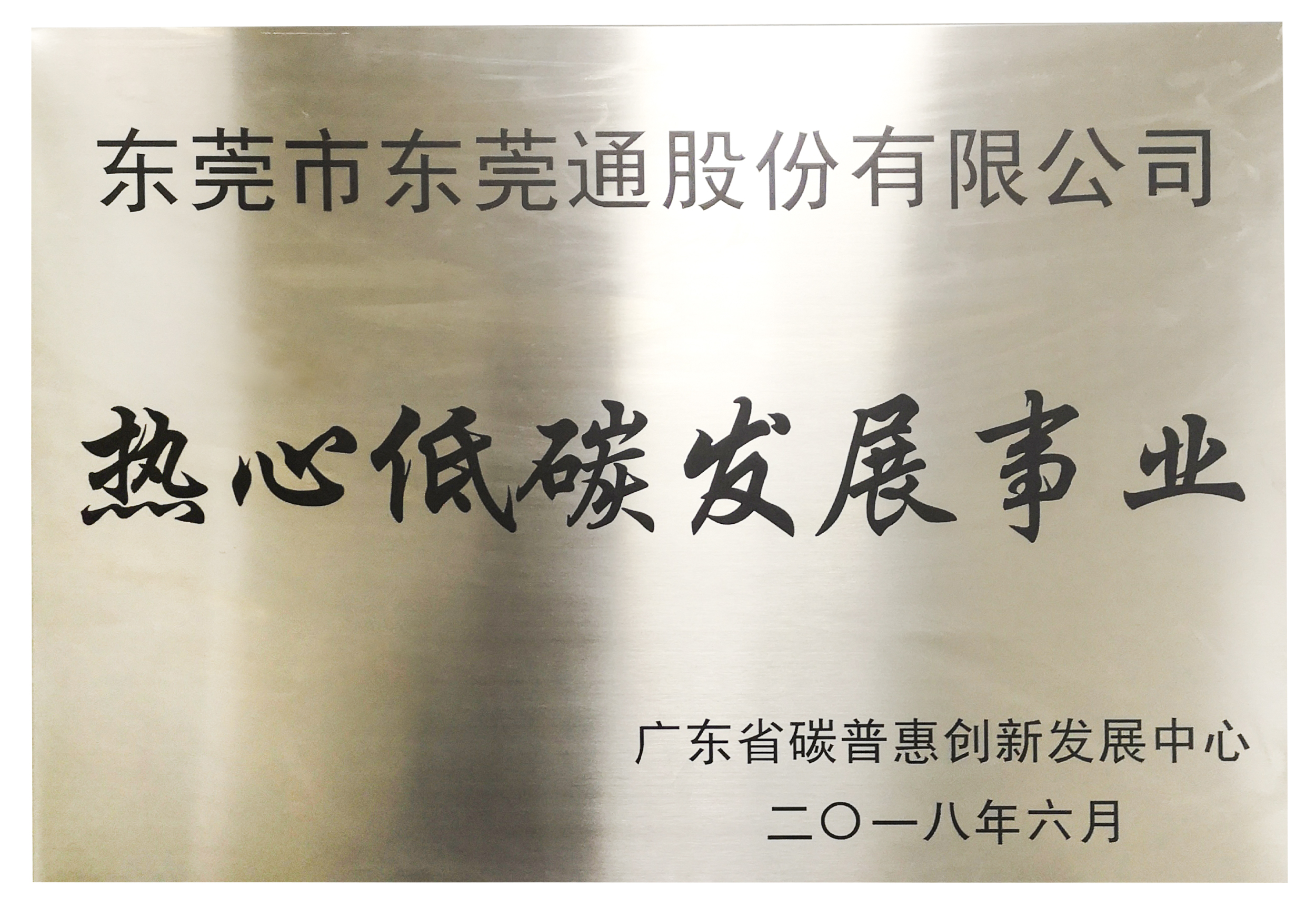 2018年6月,東莞通公司榮獲“熱心低碳發(fā)展事業(yè)”榮譽稱號。
