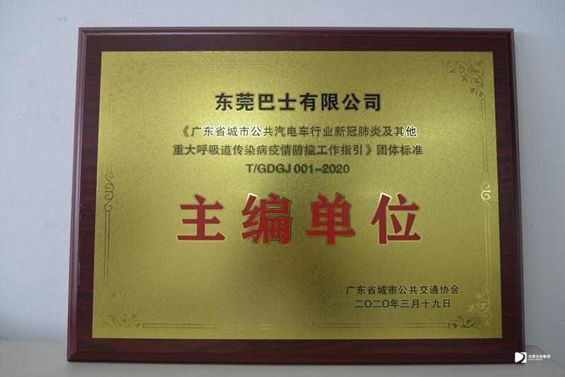 2020年3月,東莞巴士有限公司獲《廣東省城市公共汽電車行業(yè)新冠肺炎及其他重大呼吸道傳染病疫情防控工作指引》團體標準“主編單位”榮譽稱號