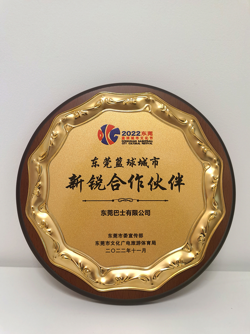 2022年11月,東莞巴士有限公司榮獲2022年“東莞籃球城市新銳合作伙伴”稱號