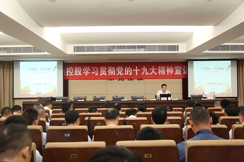 2018年4月4日,東莞控股召開(kāi)學(xué)習(xí)貫徹黨的十九精神宣講會(huì),邀請(qǐng)市委宣講團(tuán)成員、市委黨校黨建與統(tǒng)戰(zhàn)理論教研部主任王金豹主講。
