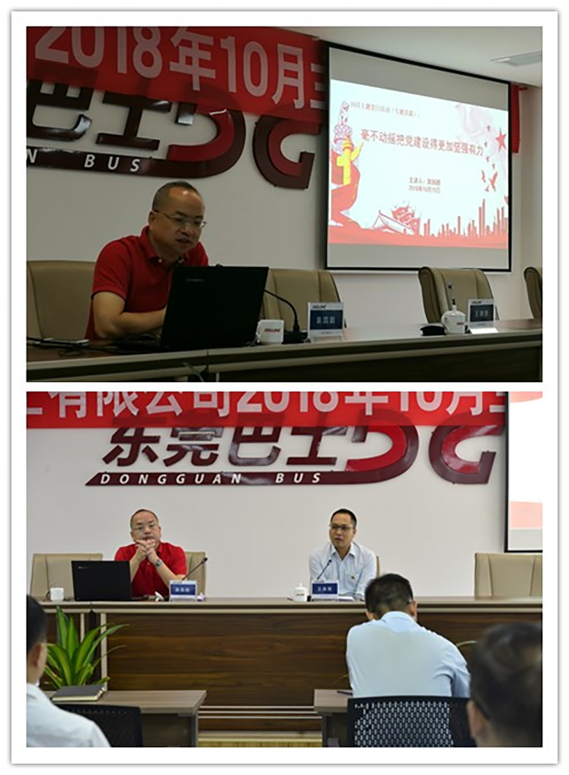 2018年10月15日,東莞巴士黨支部有限公司10月主題黨日活動(dòng)(專題黨課:毫不動(dòng)搖把黨建設(shè)得更加堅(jiān)強(qiáng)有力)。