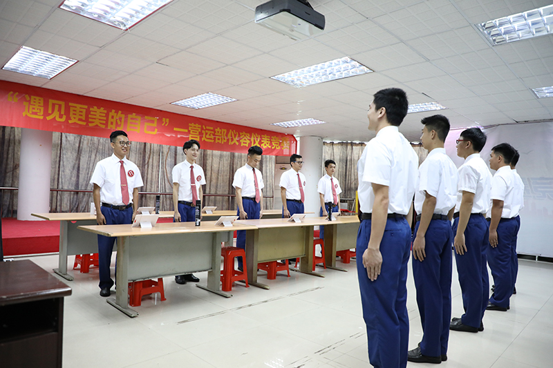 2018年9月13日, 東莞控股公司周年慶系列活動之“幸福都是奮斗出來的”業(yè)務競賽,圖為儀容儀表整理。